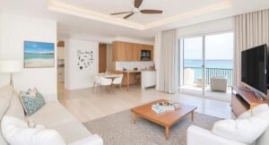 The lighting and electrical upgrades in the Bluewaters Island apartment renovation are designed to enhance ambiance, functionality, and energy efficiency. To achieve this, we’ve implemented a layered lighting approach, combining recessed LED downlights, cove lighting, and statement fixtures for both task and mood lighting. Furthermore, dimmable switches and smart lighting systems allow for personalized control via mobile apps or voice commands.