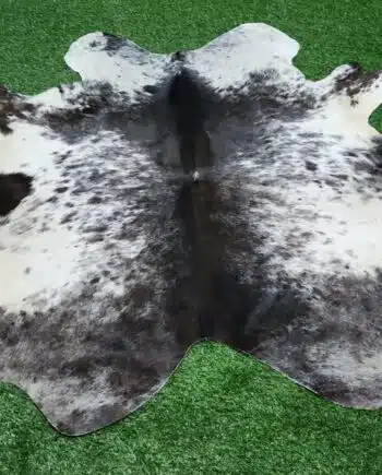 Natural Grey & White Cowhide Rug – Multi-Shade Charcoal Pattern | 142×130 cm