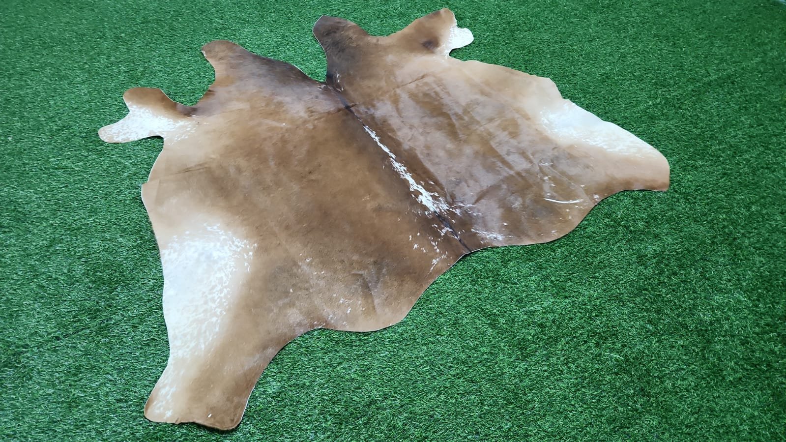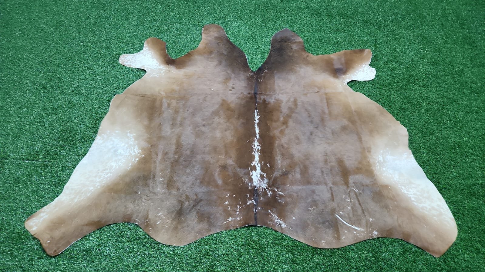 The edges gradually fade into lighter beige shades, giving the rug a soft, earthy, and elegant appearance. This hide is ideal for interiors that prefer warm, neutral, and natural décor.