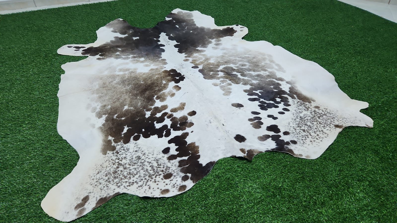 Natural Brown & White Cowhide Rug – 153×176 cm