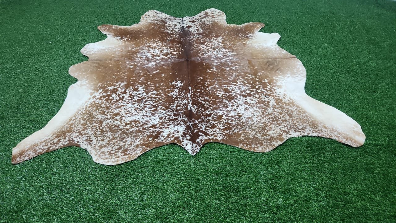 brown white cowhide rug
