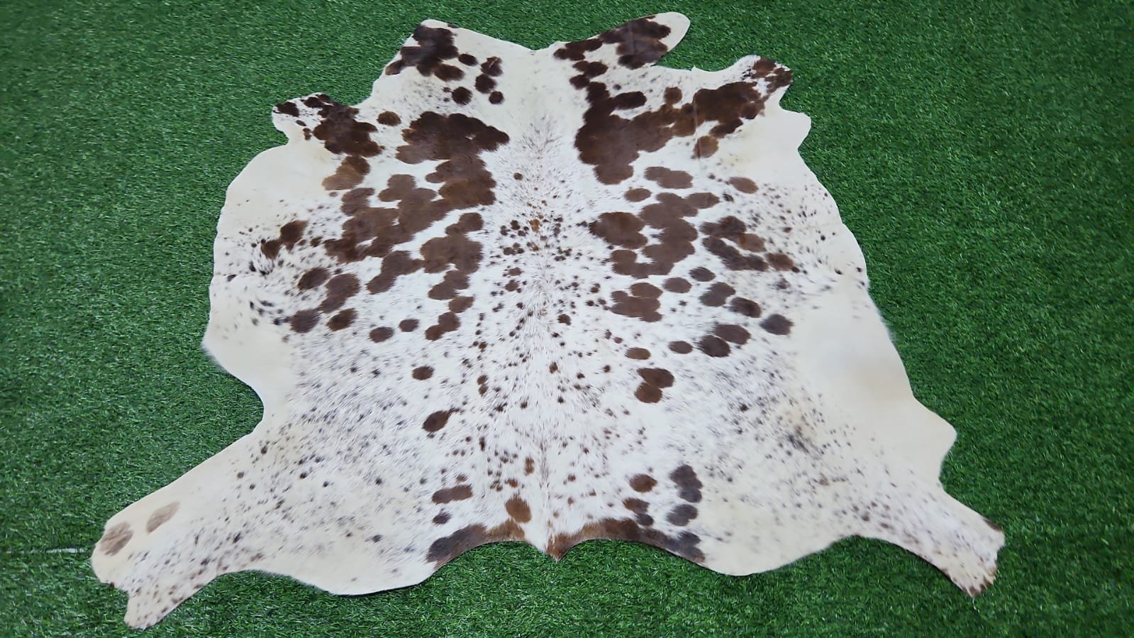 Brown & White Spotted Cowhide Rug – Natural Multi-Shade Pattern | 128×122 cm