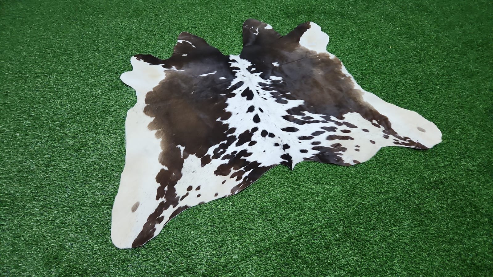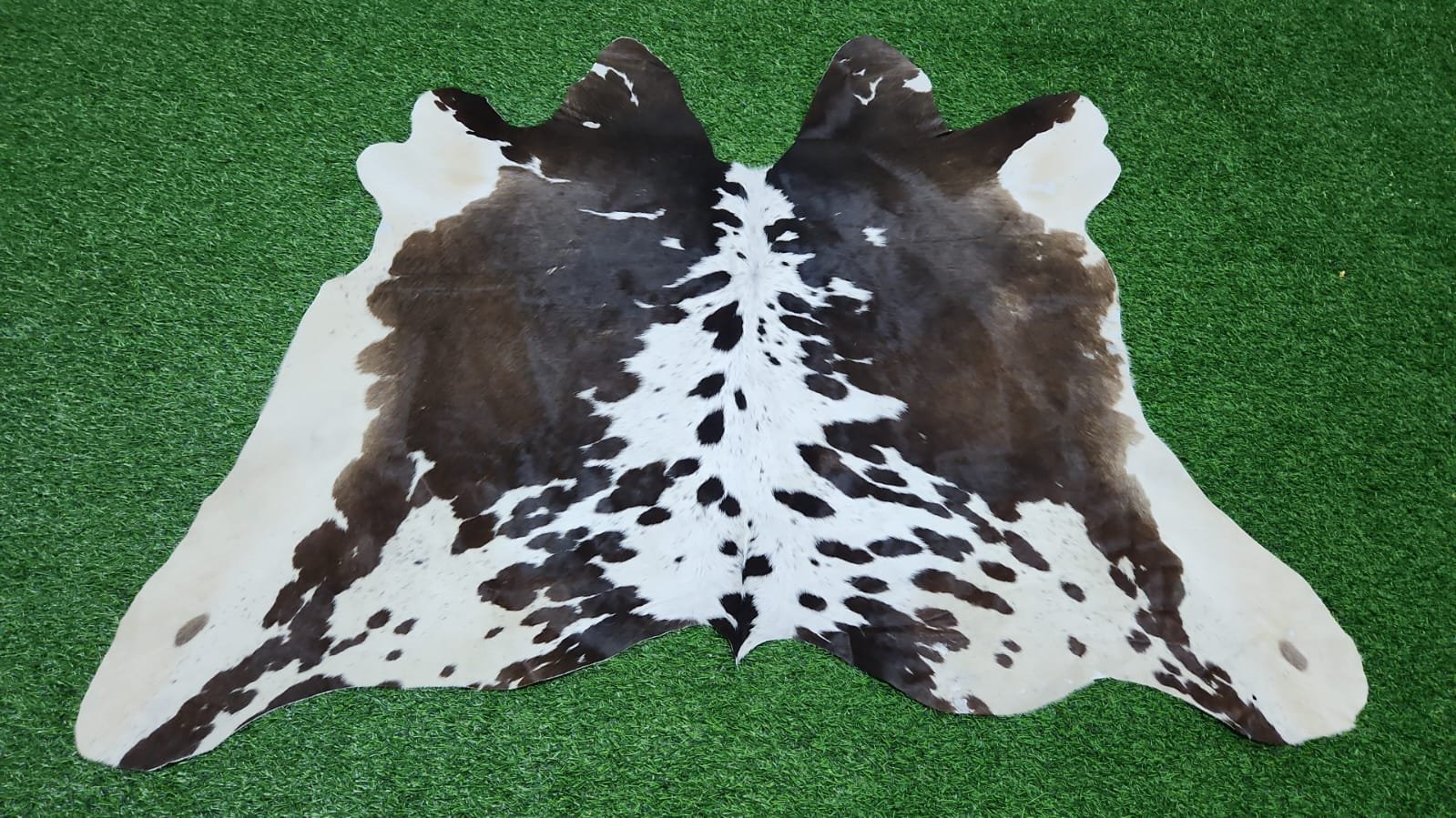 Overall Tone: Tri-tone natural cowhide (Black + Brown + White)