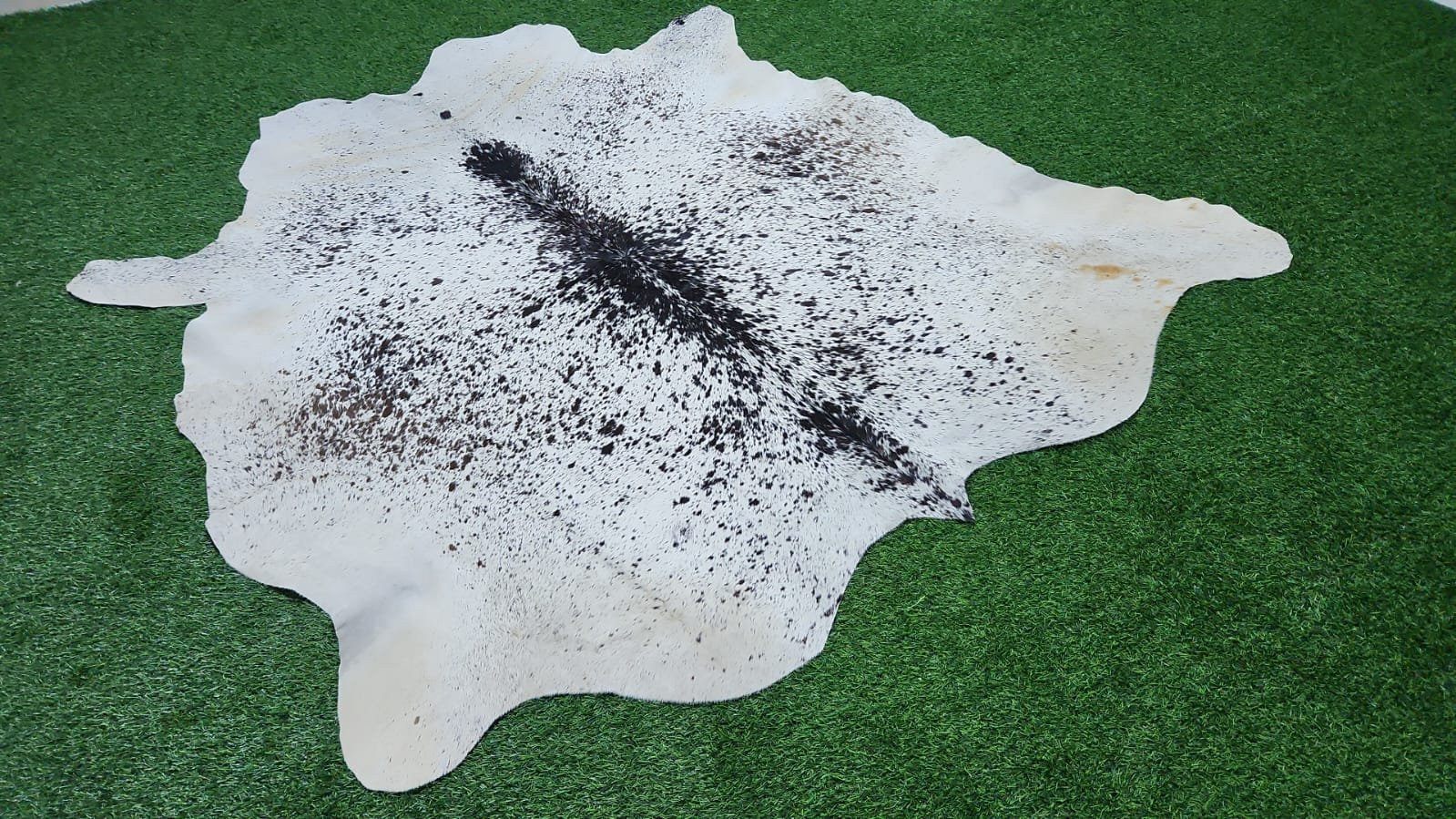Premium Natural Cowhide Rug – White with Black Speckles (172×180 cm)