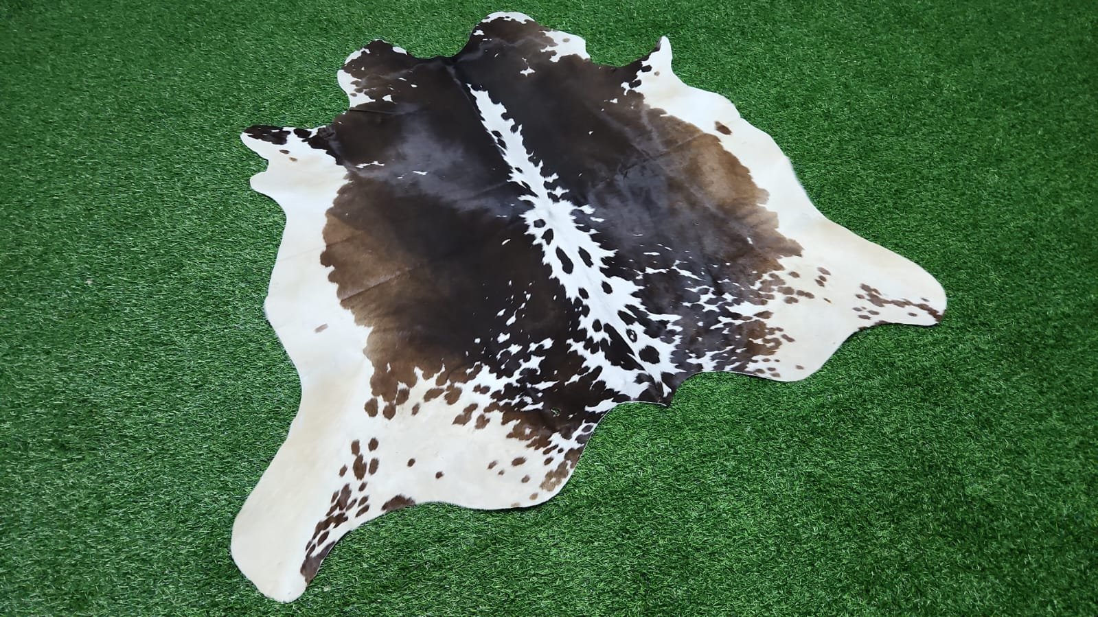 Natural Multicolor Cowhide Rug – 190×135 cm (Dark Center Spine Pattern)
