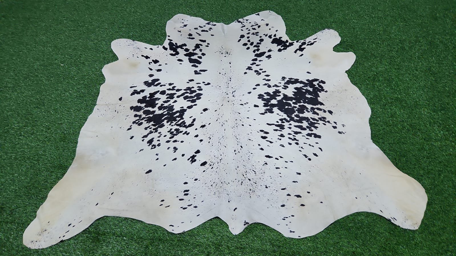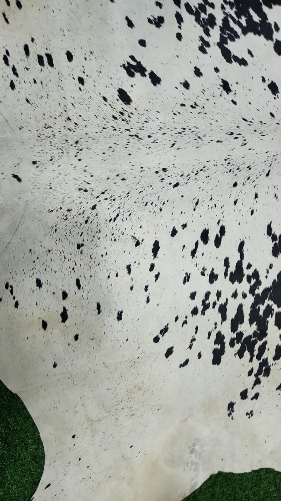 This genuine cowhide rug features a classic white and black color combination, perfect for modern, Scandinavian, minimalist, and luxury interiors. The speckled black pattern adds character without overpowering the space, making it suitable for both light and dark décor themes.