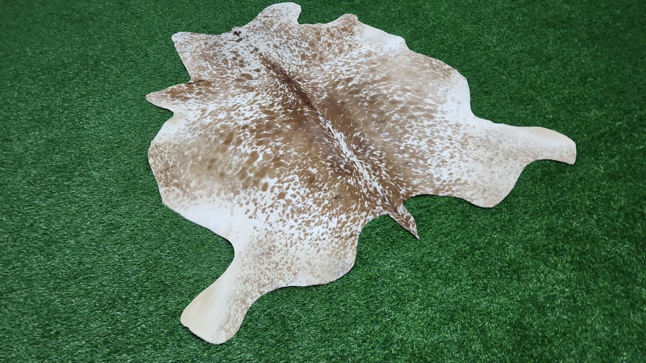 Natural White & Brown Speckled Cowhide Rug – 130×140 cm