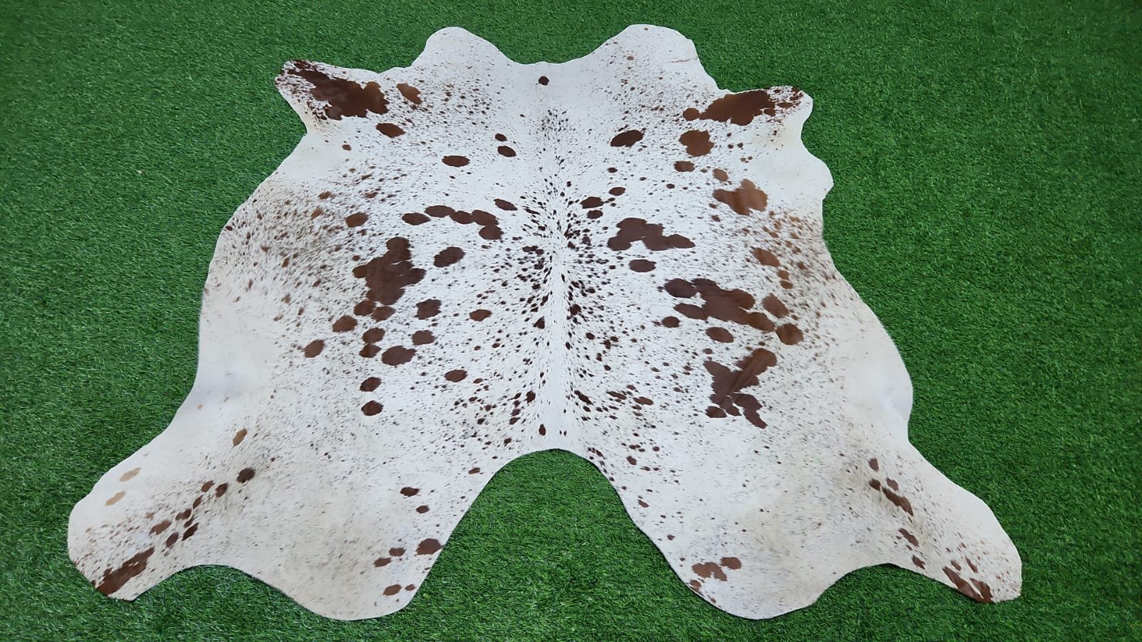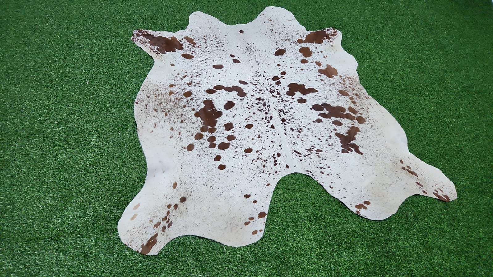 Natural Cowhide Rug – 155×156 cm (White & Brown Spotted Pattern)