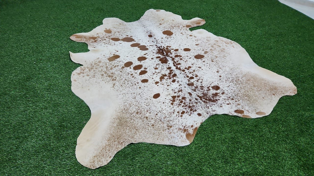 white brown cowhide rug